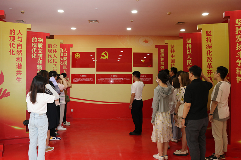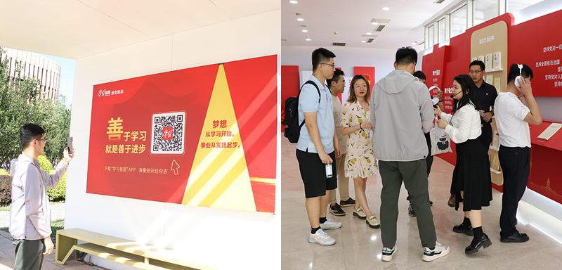 在天津團市委宣傳部有關領導的帶領下,團員青年們在室內體驗區和室外體驗區沉浸式學習互動,實現了從“云端”學習到線下體驗的延伸,參觀了學習展示、領學互動、“紅色家書”互動墻、“中國式現代化”隧道、青年打卡以及戶外學習園地等展區,體驗現代科技與“讀原著、學原文、悟原理”有機結合的多元化學習形態。