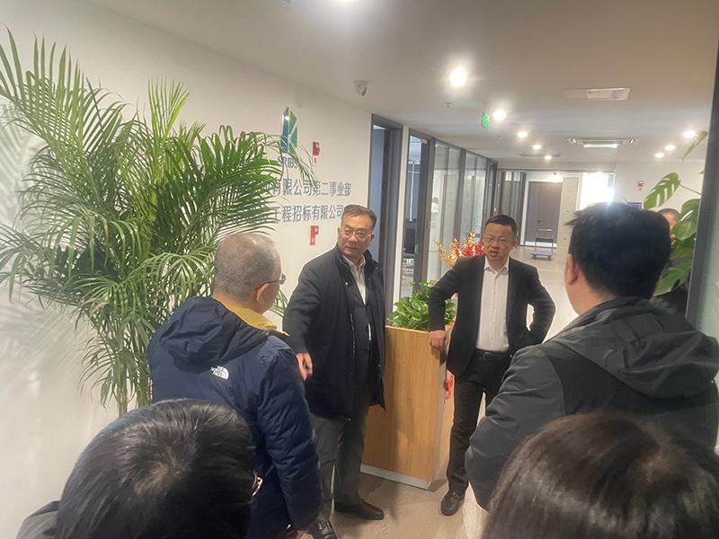 會前,李連慶一行在孫亞龍陪同下參觀了天津咨詢梅江中心大廈辦公區,并實地調研開評標室。