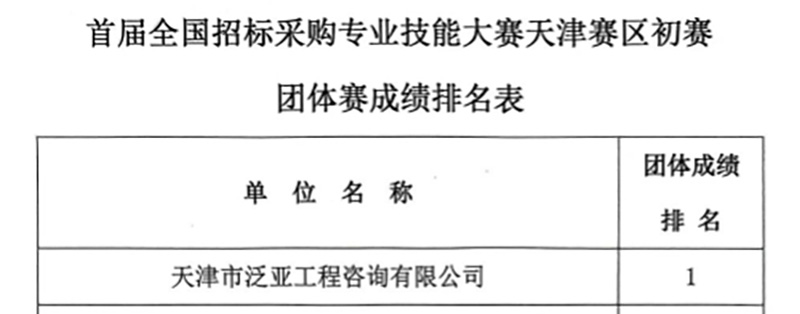 喜 報(bào)——泛亞咨詢斬獲首屆全國(guó)招標(biāo)采購(gòu)專業(yè)技能大賽 天津賽區(qū)團(tuán)體及個(gè)人雙第一