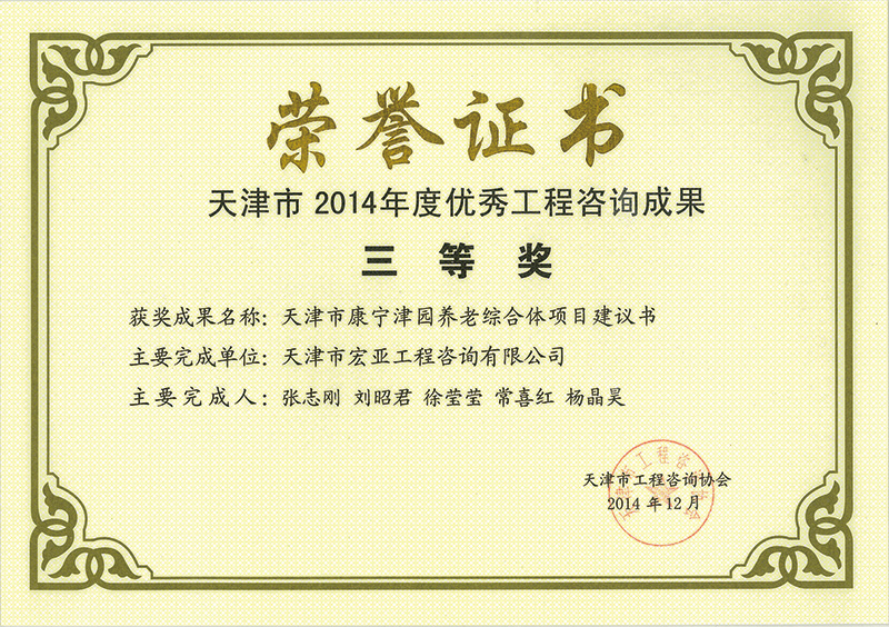 優秀咨詢成果三等獎(2014)