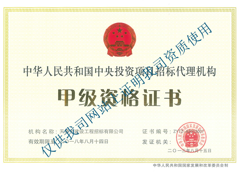 中央投資甲級資質正本