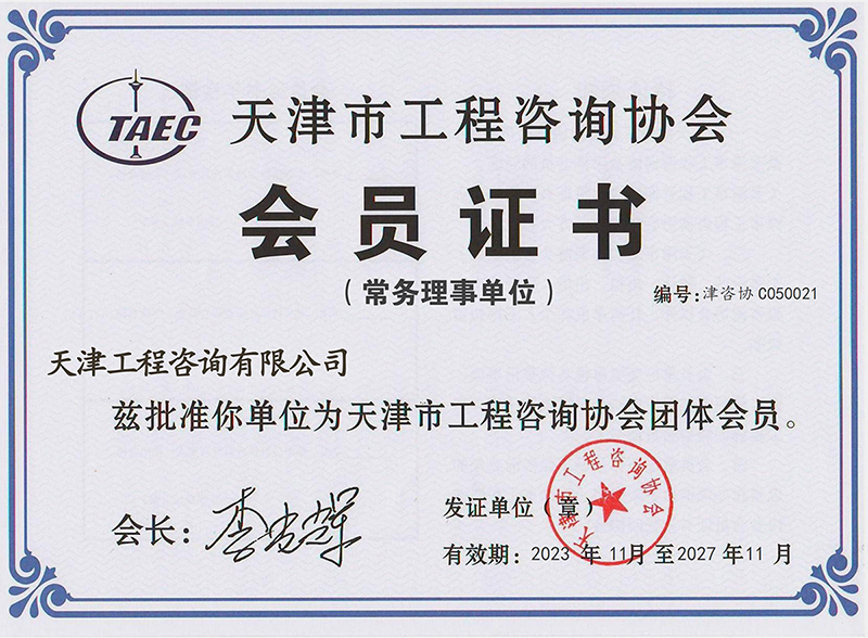 天津市工程咨詢協(xié)會(huì)會(huì)員證書(shū)