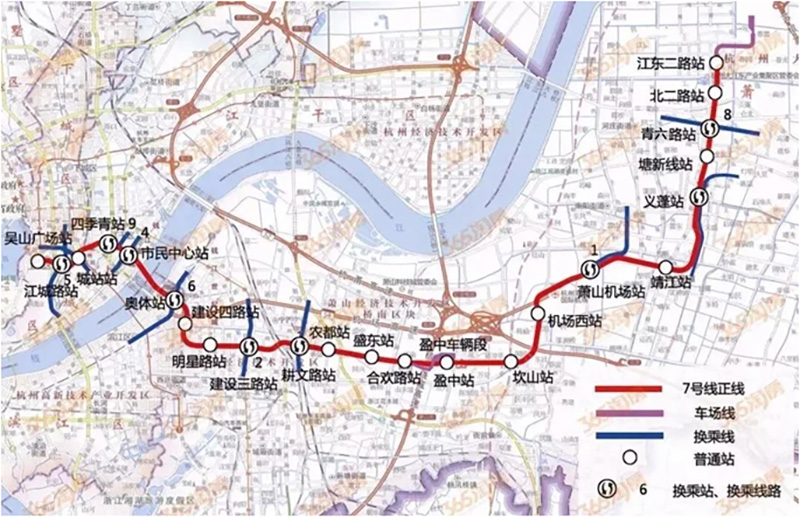 項目建設規(guī)模7號線工程自吳山廣場站至江東二路站,全長47.481公里,全部為地下線,共設車站23座,新建江東三路停車場1座,盈中車輛段1座,總投資約305.297億元;建設地址位于杭州市,計劃于2021年建成。